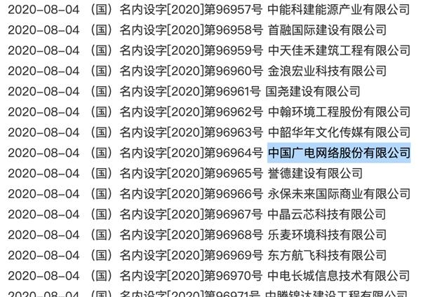 国家市场监督管理总局的一则“企业名称申报登记公告”显示,中国广电网络股份有限公司已经向国家市场监督管理总局申报登记。