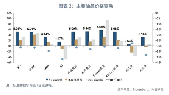 走势回顾:截至8月7日,WTI周度涨幅5.09%,Brent周度涨幅5.01%,Oman周度涨幅3.14%,SC周度涨幅1.47%。