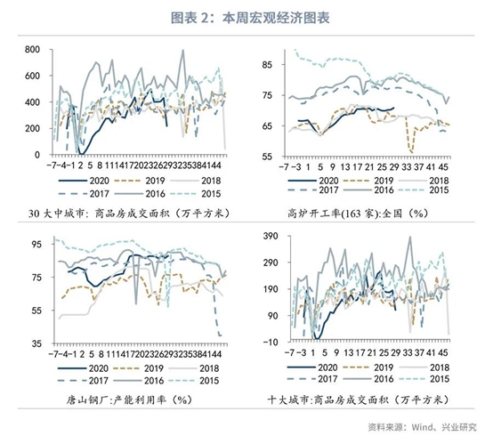 需求方面,全球7月制造业PMI连续三个月环比上升,欧洲和美洲均已回升至50%以上。中国经济恢复趋势没有改变,制造业活动稳健恢复,但外需仍不乐观。欧美第二季度经济均遭重创,7月份制造业PMI数据表现较好,但美国制造业增长乏力,就业指数仍然低迷。而且高频数据显示美国近期经济恢复明显放缓。