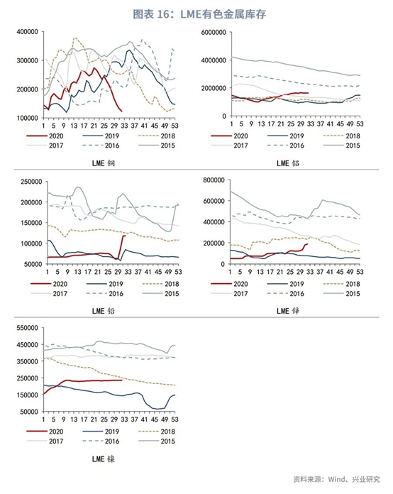 供给方面,南美疫情对于矿端的影响在降低。智利上半年基本维持生产,铜产量在6月份首次出现下滑,仅同比减少0.6%;智利国家铜业公司(Codelco)前六个月将铜产量提高4.7%,且即将恢复因疫情暂停的运营及项目。秘鲁上半年铜产量同比骤降20.4%,但6月份铜产量环比增加40.8%,采矿行业已经从5月开始逐步恢复正常运作。不过,包括嘉能可在内的部分大型矿商二季度产量明显下滑,供应整体仍然偏紧,TC持续低位亦提供一些支撑。