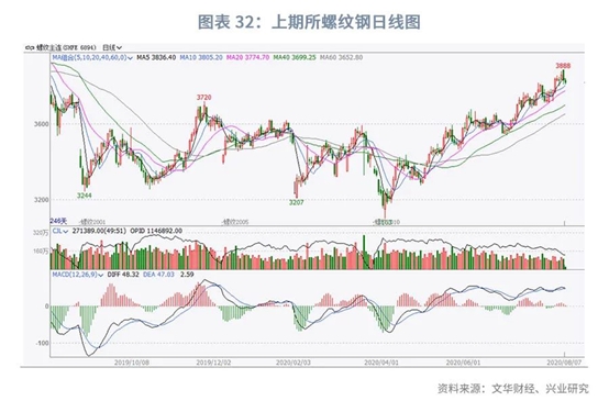 供给方面,8月7日,Mysteel调研247家钢厂高炉开工率91.41%,环比上周增0.26%,同比去年同期增2.86%;高炉炼铁产能利用率94.75%,环比增0.25%,同比增6.82%。本周螺纹钢供应环比减少4.07万吨,较去年同期增加14.03万吨,同比增幅为3.78%。从区域来看,华东、华北、东北和西南均有减产,华中、华南和东北均有增量;从省份来看,广西和江苏为主要增产省份,主要原因在于前期减产检修的代表样本产量逐渐恢复,河北和安徽为主要降产省份,主要原因在于铁水调配,建材产量稍减。当前钢厂生产情况基本正常,长流程企业因转产/临检等使螺纹钢产量略有变化,但因当前市场心态转好,钢厂生产积极性尚佳,因此预计下周螺纹钢供应继续持稳。需求方面,本周华东地区建筑钢材价格大幅拉涨。由于华东地区完全出梅,终端需求有所回暖,市场预期较为积极,周初期螺盘面大幅拉涨,现货市场交投积极,成交明显放量,不过由于需求爆发相对集中,后半周市场实际需求有所透支,加之盘面回调,投机需求活跃度下降,现货价格小幅回落。本周成交整体呈现前高后低态势,主要原因仍在于当前市场终端需求未有明显回暖,而投机需求又受盘面影响较大,需求持续性偏弱。库存方面,本周全国社会库存由增转减。从库存数据来看,本周全国建材厂库小幅减少,社会库存也由增转减,呈微幅下降。其中国内主要城市螺纹钢、线材总库存为1056.64万吨,较上周(2020年7月30日)下降7.43万吨,降幅为0.70%。去年同期库存817.27万吨,同比增加239.37万吨或增29.29%。