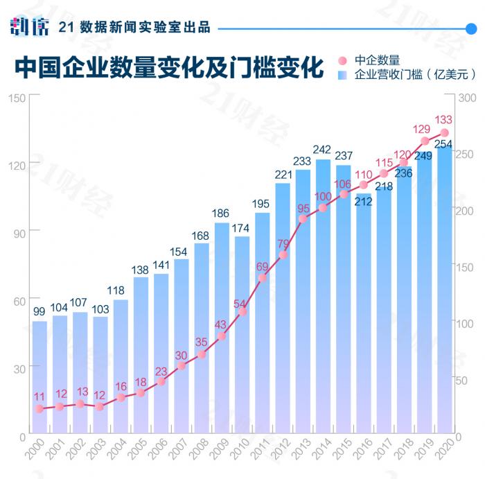 随着中国经济总量迅速增加,中国上榜企业数量实现飞速增长。今年中国上榜企业共133家,已连续增长17年。