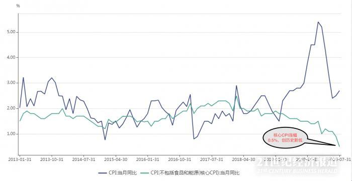 (7月核心CPI同比上涨0.5%,为有该项数据以来最低值)