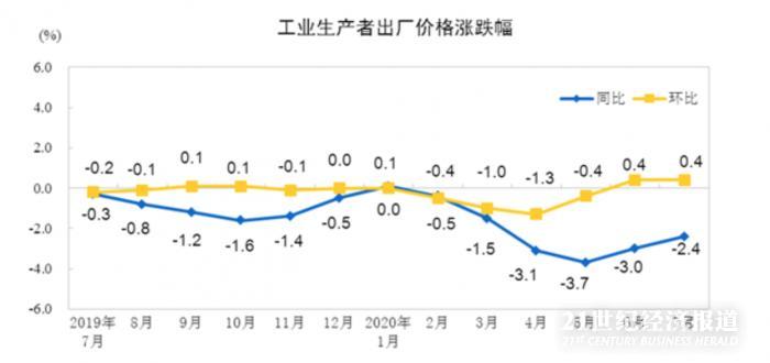 7月PPI同比下降2.4%,环比上涨0.4%,PPI仍在稳定恢复。