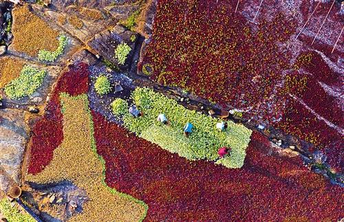 长阳榔坪镇木瓜喜获丰收,当地农民在晾晒木瓜。 王双跃摄(中经视觉)