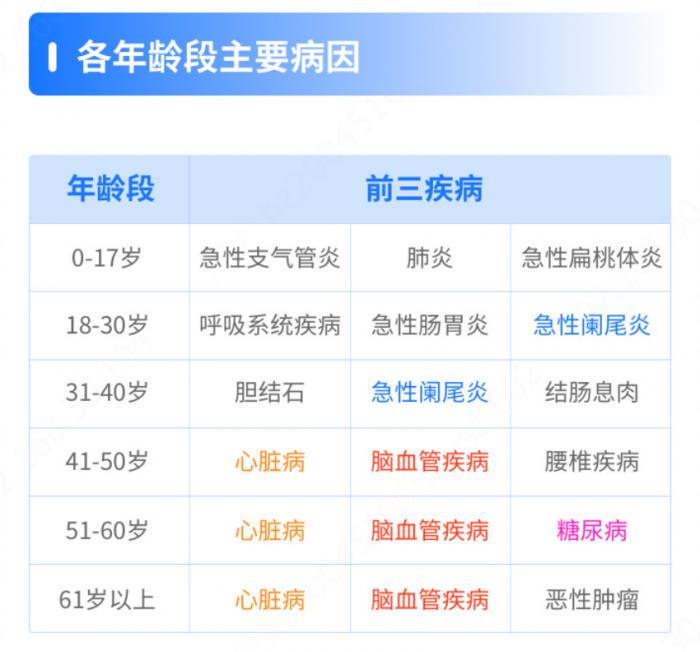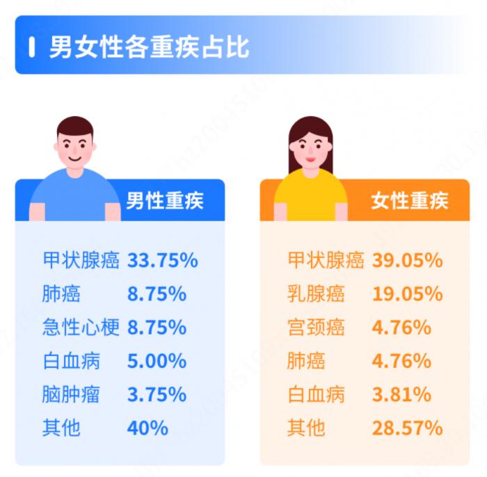 数据统计显示,31-40岁的年纪,不管对于男性还是女性均为重疾高发年龄,比例达到了52.5%和51.43%。