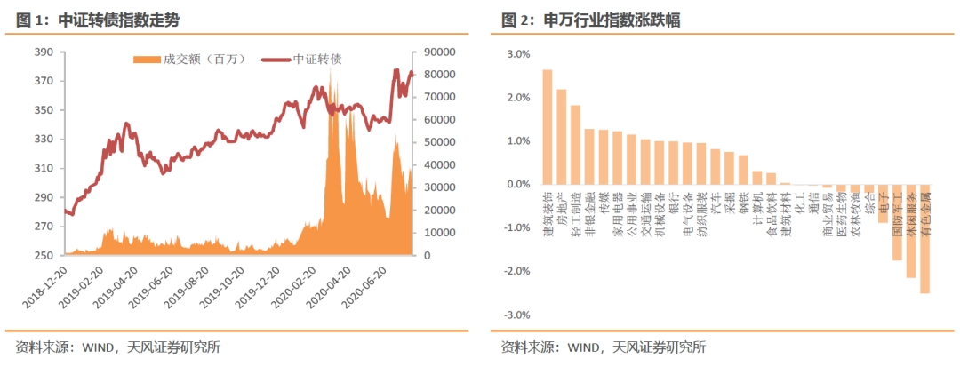 周一上证指数收于3379.25点,较前一交易日上涨0.75%。中证转债指数收于373.56点,较前一交易日上涨0.10%。上涨前三个券分别为蓝盾转债(72.18%)、广电转债(50.79%)、凯发转债(33.07%);下跌前三个券分别为华钰转债(-9.31%)、宏川转债(-7.56%)、正邦转债(-7.43%)。