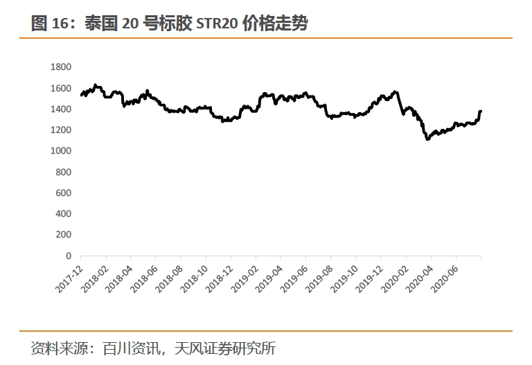国内天然橡胶价格下跌。胀预期资金热度较高,RU期货仓单库存低位,新胶减产,RU01看涨预期较高,20号胶国内实际库存偏低,现货价格坚挺,推动胶价出现不同程度上涨。外盘贸易商报盘观望心态浓厚,少量报盘为主,报盘价格上涨,询盘积极性一般。内盘国产胶方面,盘中贸易商出货积极性尚可,受高价影响成交较为僵持,买盘接货意愿较低,价格上涨。(资料来源:百川资讯)