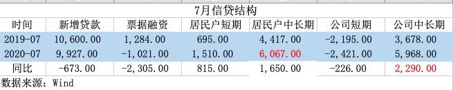 7月新增信贷规模为9927亿,低于市场预期,同比少增673亿。
