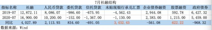 7月社融新增规模为1.69万亿,同比多增4027亿,超出市场预期。主要因为未贴现银行承兑汇票收缩规模远小于去年同期、股票融资增加较多。