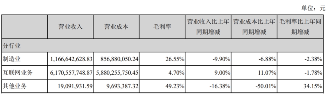 分业务来看,与数字营销业务相比,传统制造业务在营收占比上逐年降低。不过,毛利率方面,前者上半年只有4.70%,后者达到26.55%。
