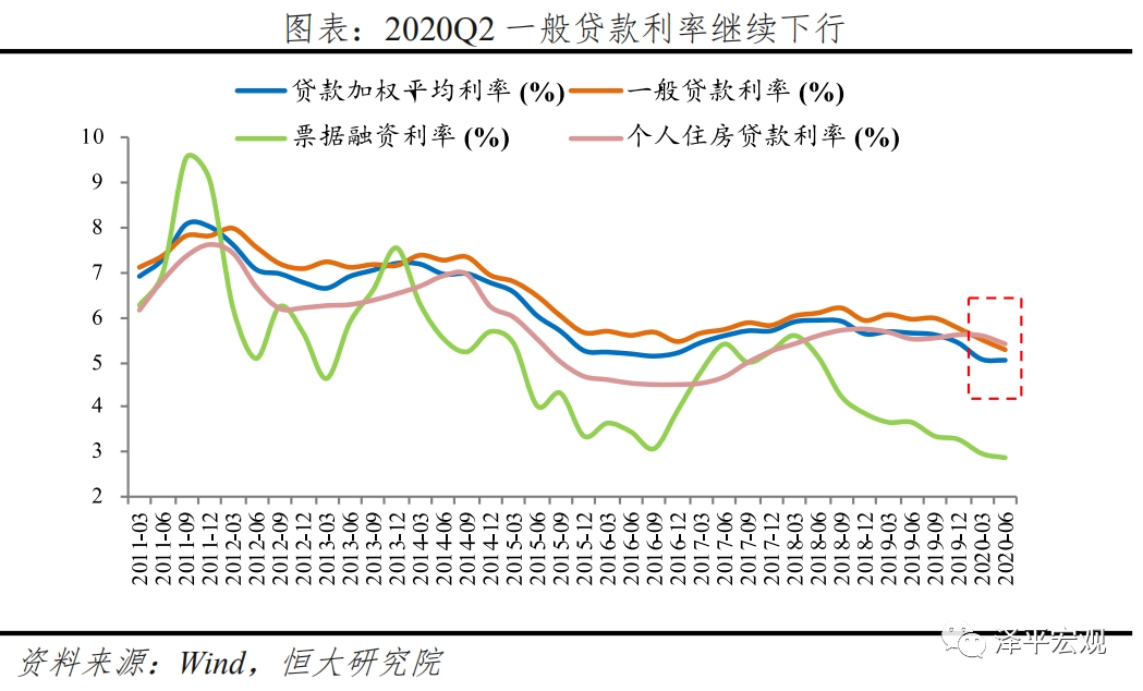 值得注意的是,2020年一季度个人住房贷款利率首次高于一般贷款利率,二季度延续趋势,个人住房贷款利率高于一般贷款利率16BP,充分体现“房住不炒”的政策基调和决心。