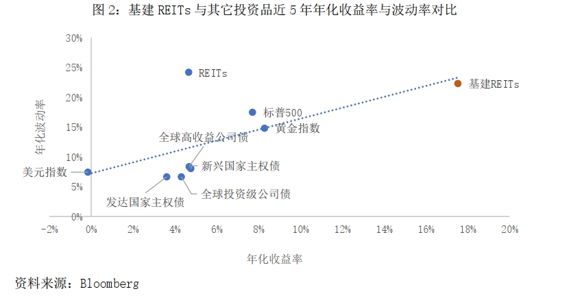 REITs(不动产投资信托)享受税收优惠及强制分红政策,具有高稳定分红和低波动的特点。