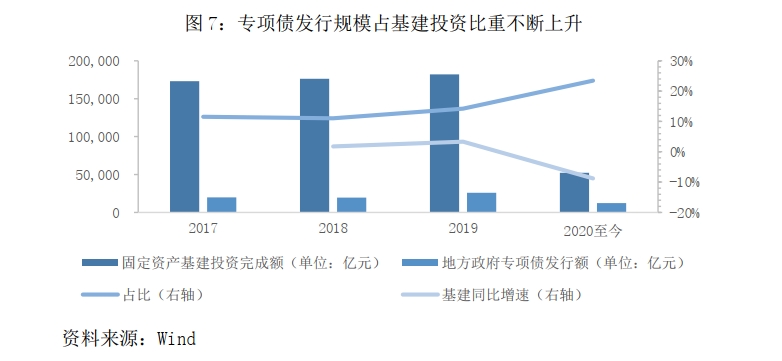 从目前的基建资金来源看,政府专项债发行额占基建投资的比重逐年走高,未来要源源不断扩展基金项目的投入资金,需要撬动更多民间资本的参与。基建REITs能为宽松财政刺激下的基建需求提供资金来源。