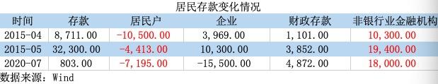 类似的现象15年4、5月也出现过。在股市火爆的情况下居民存款流入股市,通过直接参与股市二级市场或打新股、间接申购基金及理财产品等方式进入股市,居民存款的减少部分可能体现在非银同业存款当中,以证券保证金的形式体现。