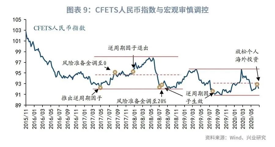 定价机制方面,“811”汇改掀开中间价定价机制改革的序幕,目前中间价由收盘价和篮子货币变动作为主要定价因子,透明度显著提升。“逆周期因子”的加入有助于修复人民币预期自我强化,加快了升贬行情的切换。