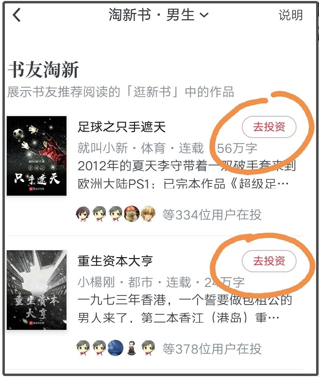 从起点APP上,可以看到专属的新书投资通道,意在让读者发现好书,一旦你投资的新书以后大火了,读者也能有相应的收益,这项通道的开启也是为了增加读者的粘性。