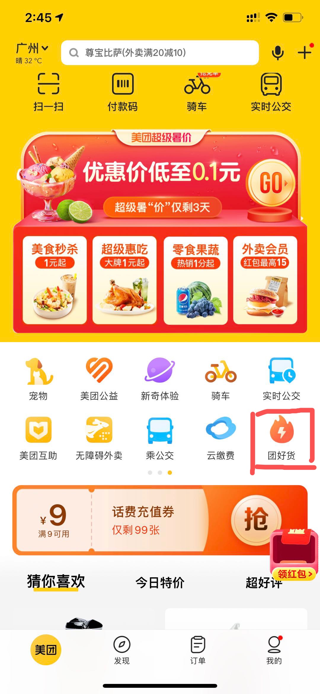 近日,美团上线了电商业务“团好货”,在APP首页功能栏左滑至第三屏便可看到“团好货”的入口。
