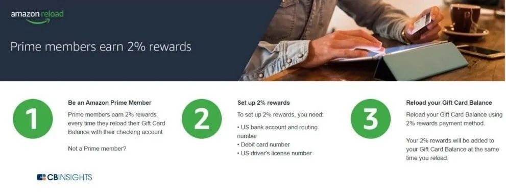 •Amazon Reload:仅适用于Prime会员的可加值数字借记卡,可从Amazon购买金额中获得2%的现金返还。该卡直接链接到消费者的支票帐户,可以定期或一次性重新加值。