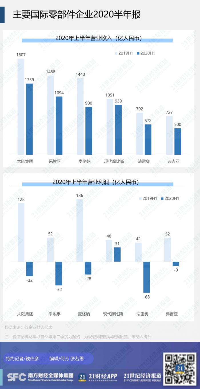 与法雷奥成为难兄难弟的还有法国第二大零部件企业佛吉亚集团。今年上半年佛吉亚营收同比萎缩了31.2%,达61.7亿欧元;营业利润跌幅高达117%,亏损1.14亿欧元。