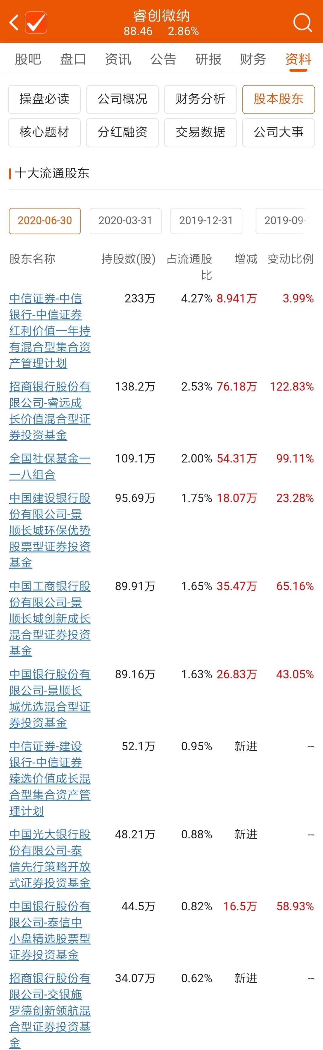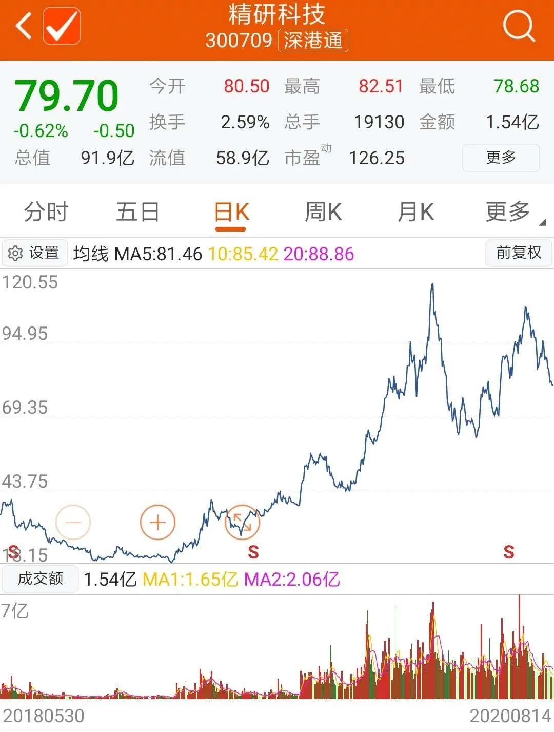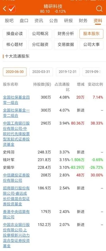 2019年下半年精研科技股价实现了翻倍。四季度,中欧远见减仓了7.59万股,中欧时代先锋减仓9.93万股,中欧明睿新常态已不在前十大流通股东之列。
