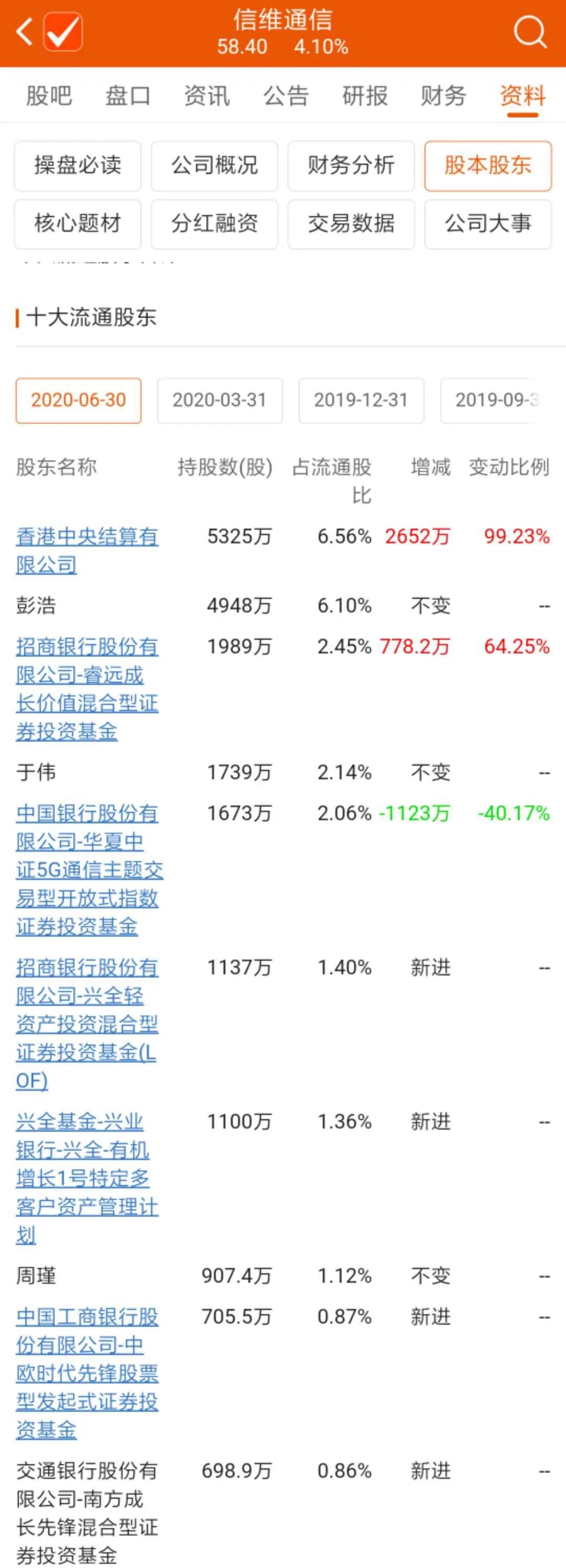 二季度,睿远成长价值继续加仓信维通信778.21万股,中欧时代先锋亦成为信维通信新进前十大流通股东。此外,董理管理的兴全轻资产投资,发行规模超300亿元的南方成长先锋也是公司新进前十大流通股东。