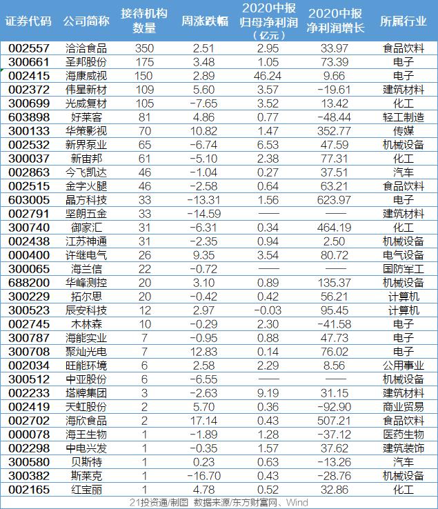 以下为最近一周机构调研个股名单: