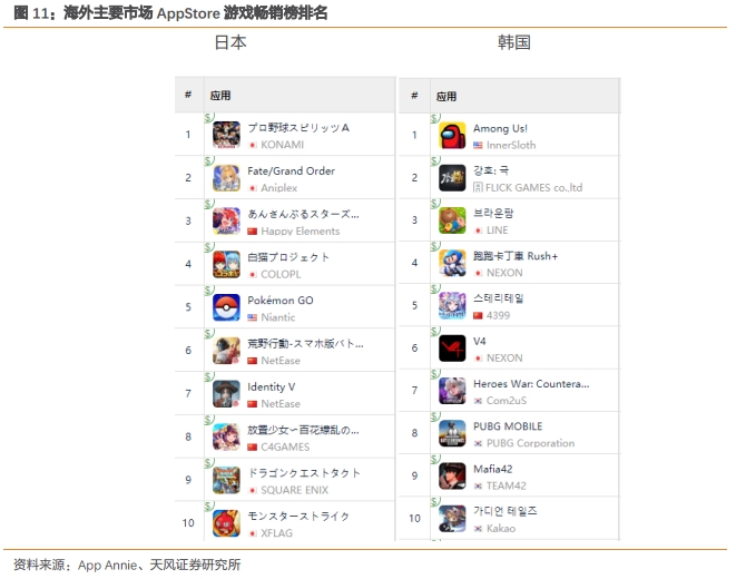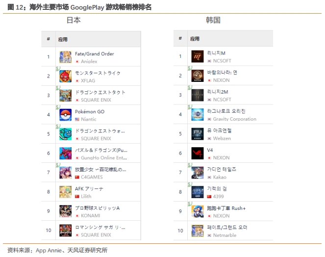 【海外主要市场及中国香港、中国台湾游戏排行】
