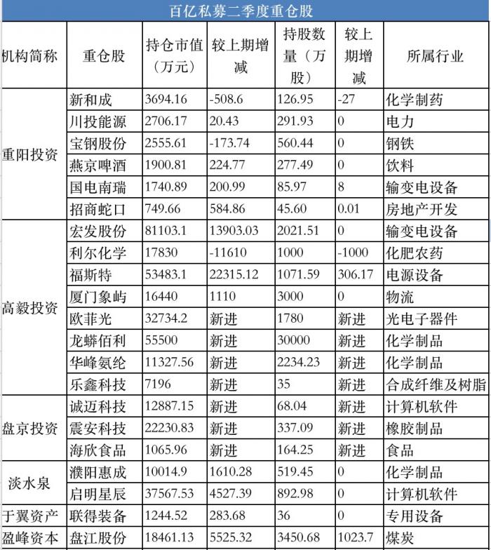 目前披露的上市公司二季报中,多家百亿私募没有明显调仓。