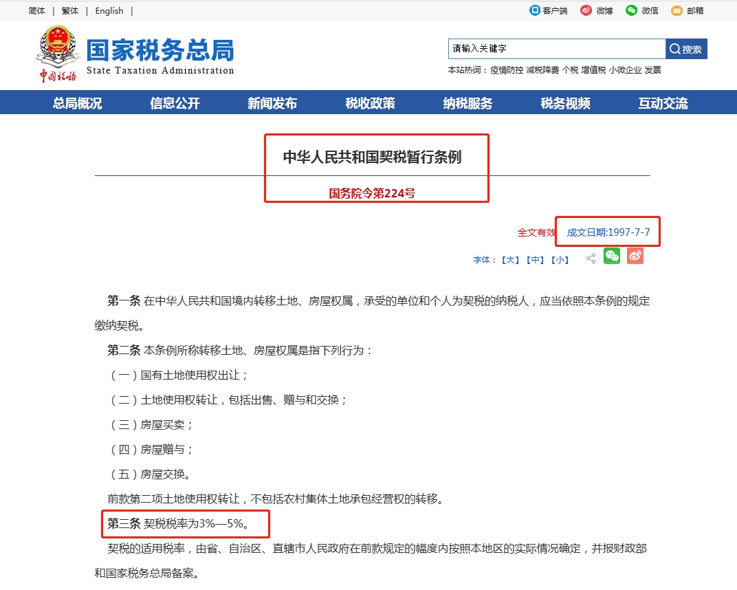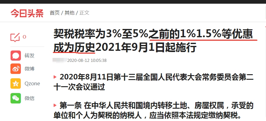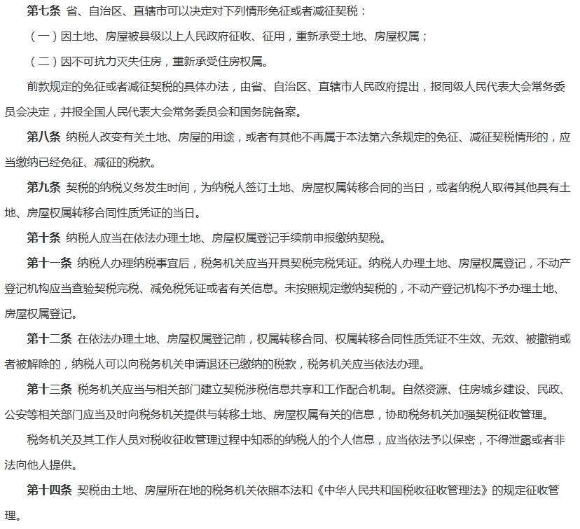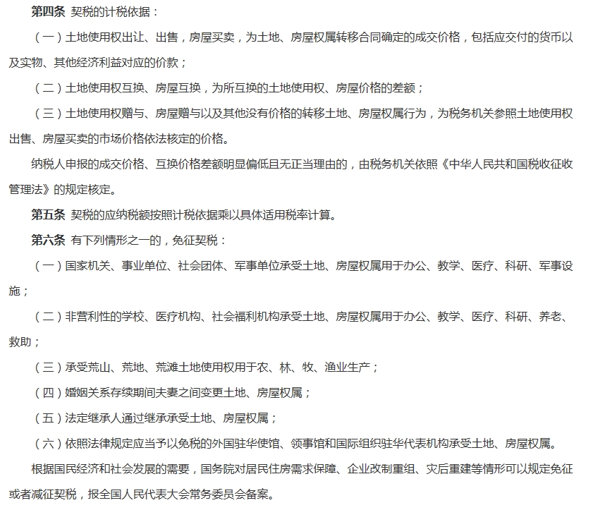 但哪怕花上5分钟,读一下这个契税法的全文,也不至于得出如此结论。