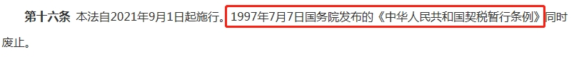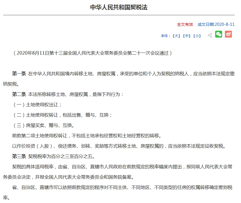 也就是说,之前一直都是暂行条例,现在升级为《中华人民共和国契税法》。