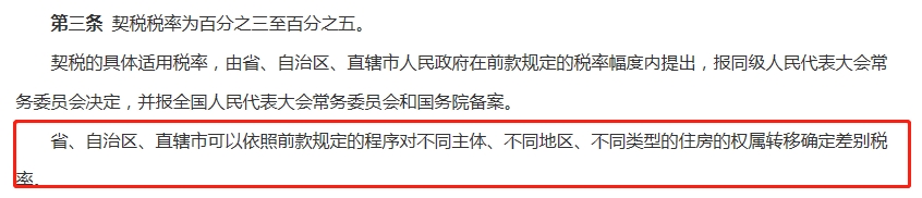 值得注意的是,新的契税法还强调了各地可按照前款规定施行差别税率。