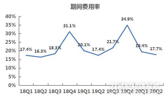 毛利率虽然下行,但是从上图可以看到,公司的期间费用率,也就是销售费用、管理费用和财务费用合计占营业收入的比例,2020年二季度处于比较低的水平,显示公司的费用管控有所加强,因此在营业成本占比增加后(毛利率下降)费用项并没有进一步拖累利润表现。