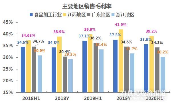 上图是公司在三大地区的半年度收入增速表现。从中可以看到,公司上半年在三大片区的收入增速,只有浙江地区超越了公司16.77%的整体增速,核心地区江西的增速是低于公司整体的,而广东地区更是出现了负增长。