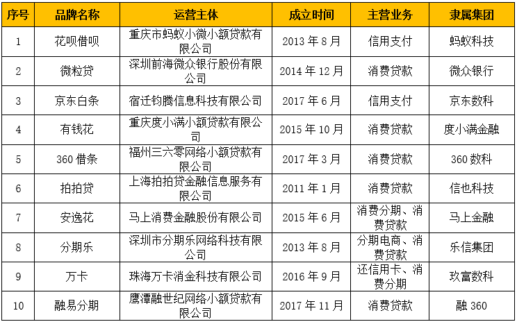 据开甲财经不完全统计,国内注册用户突破1亿的消费金融平台共有10家,分别为花呗借呗、微粒贷、京东白条、分期乐、万卡等10家平台。