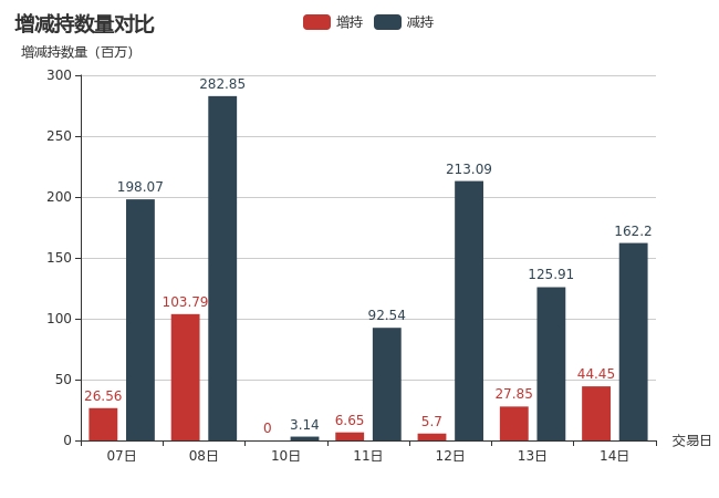 从增持和减持金额看,近7日增持金额排名前三的是焦作万方(000612.SZ)、恒泰艾普(300157.SZ)、四川路桥(600039.SH),分别增持金额为1.94亿元、1.80亿元、1.43亿元。而近7日减持金额排名前三的是宁波银行(002142.SZ)、闻泰科技(600745.SH)、同仁堂(600085.SH),分别减持金额为13.82亿元、8.99亿元、8.24亿元。