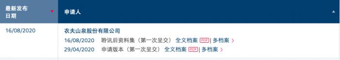 早在今年3月17日,证监会官网显示,证监会国际部正式接收了农夫山泉股份有限公司提交的《股份有限公司境外首次公开发行股份(包括普通股、优先股等各类股票及股票的派生形式)审批》材料。