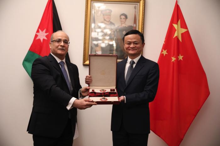 8月18日,约旦驻华大使馆举行了一次特殊的招待会。为了感谢马云及中国企业家对全球抗疫做出的努力,约旦驻华大使胡萨姆·侯赛尼代表约旦国王向马云授予代表本国最高荣誉的勋章:“在约旦疫情蔓延初期,你就向约旦提供抗疫物资,这对我们抗疫起到重要作用,非常感谢你的善举!”