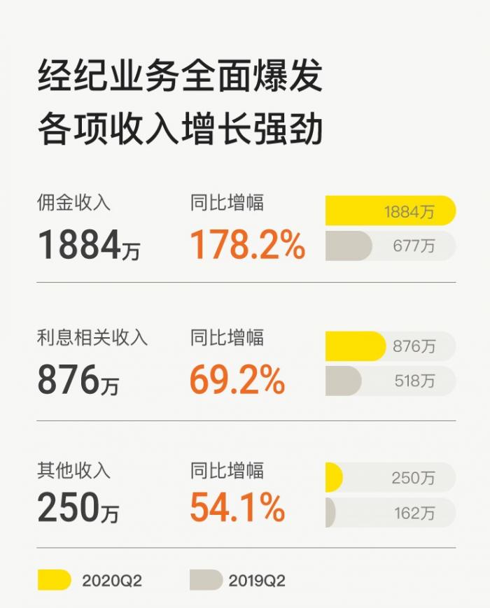 业绩增长得益于经纪业务爆发。其中,佣金收入约为1884万美元,同比增长超过178.2%。利息相关收入为876万,同比增长69.2%。以投行、ESOP等机构业务为主的其他收入达250万美元,同比增长54.3%。