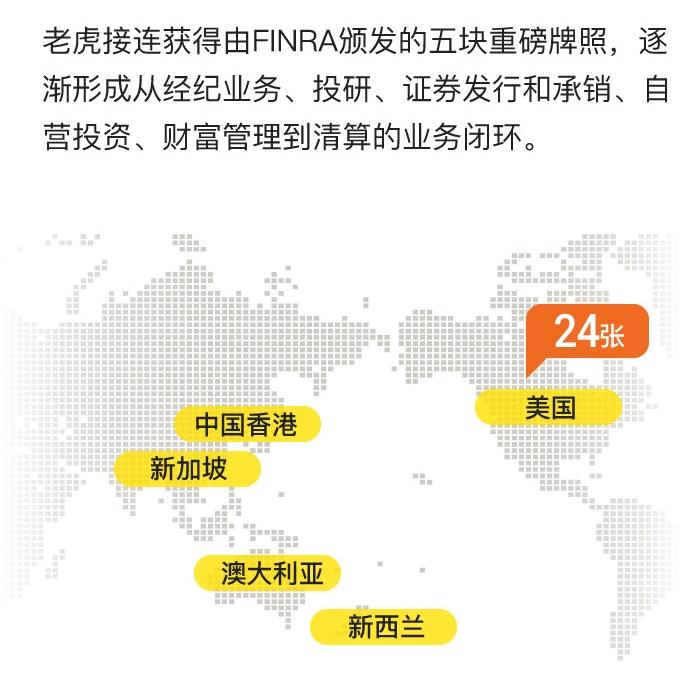 目前,老虎证券在美国、澳大利亚、新加坡等国家和地区共获得24块证券牌照或资质,为中资美股券商中持牌最多样化的券商。
