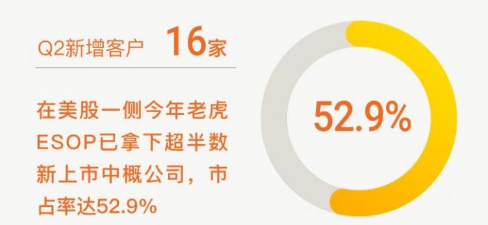 值得一提的是,在美股一侧今年老虎ESOP已拿下超半数新上市中概公司,市占率达52.9%,签约客户包括蛋壳公寓、荔枝、慧择控股等,遥遥领先其他ESOP供应商。而在港股一侧,小米、爱康医疗等明星企业也是老虎的签约客户。与此同时,ESOP反哺经纪业务的作用持续凸显,二季度新增入金客户中约有超10%来自ESOP客户。