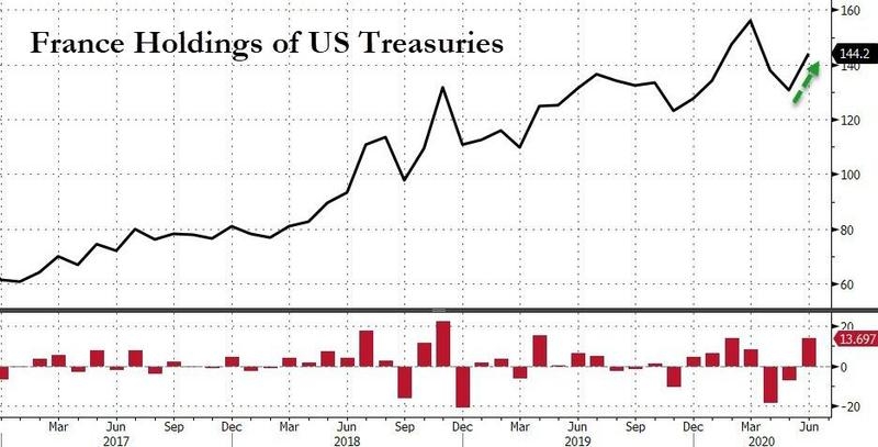 另一方面,法国则增持了最多的美债,6月份净买入量高达137亿美元。爱尔兰的持有量攀升至3304亿美元,较上月的3242亿美元有所增加。