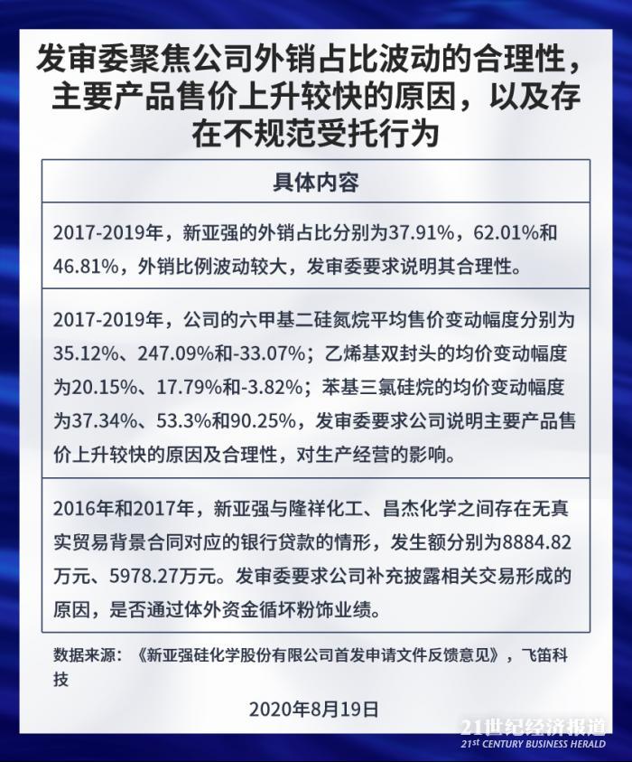 其次是主要产品售价上升较快的原因,2017-2019年,公司的六甲基二硅氮烷平均售价变动幅度分别为35.12%、247.09%和-33.07%;乙烯基双封头的均价变动幅度为20.15%、17.79%和-3.82%;苯基三氯硅烷的均价变动幅度为37.34%、53.3%和90.25%,发审委要求公司说明主要产品售价上升较快的原因及合理性,对生产经营的影响。
