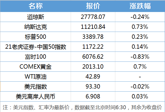 美股三大指数收盘涨跌不一,纳指涨0.73%,续创收盘新高;标普500指数涨0.23%,收盘创纪录高位,收复自新冠疫情以来的失地。大型科技股普涨,亚马逊涨超4%,谷歌、特斯拉涨超2%,苹果涨近1%。热门中概股多数上涨,京东涨近5%创收盘新高。