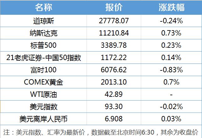 周二美股分化,投资者关注国会刺激计划谈判进展和地缘政治潜在风险。截至收盘,道指跌66.84点,跌幅0.24%,报27778.07点,纳指涨0.73%,报11210.84点,标普500指数涨0.23%,报3389.78点,时隔半年再创历史新高。