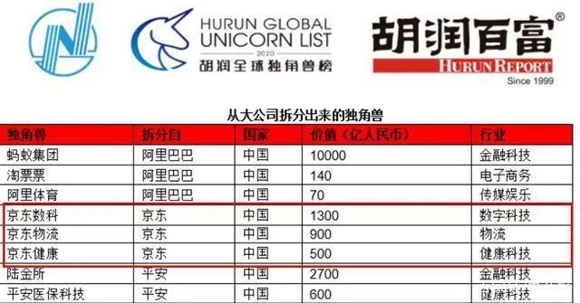 值得一提的是,如今的京东除了坐拥京东集团和达达两家上市公司外,还手握三家独角兽——京东数科、京东物流、京东健康。从“2020胡润全球独角兽榜”最新的估值来看,京东数科价值1300亿人民币、京东物流900亿人民币、京东健康500亿人民币,一同冲进榜单前40,而且陆续传出了冲击IPO的消息,牵动着许多投资人的心。