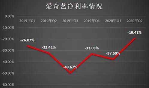 另一方面,2020年二季度爱奇艺整体净利率为-19.41%,虽然较前几个季度有所收窄,但距离“转正”红线仍有不少距离。
