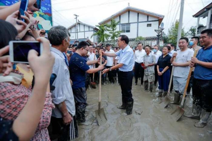 据“重庆发布”微信公众号报道,8月20日上午11时许,李克强总理飞抵重庆,一下飞机马上转乘火车、汽车,一路辗转来到洪水灾情严重的潼南区双坝村。