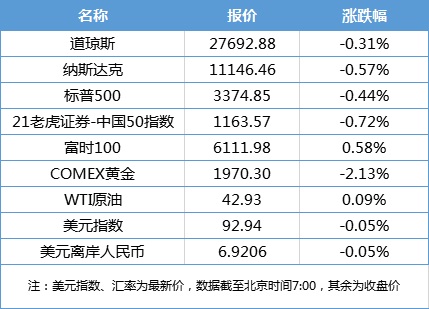 美联储纪要预计疫情对经济造成“重大压力”,并下调下半年经济增长预期,美股盘中跳水全线收跌,道指跌近百点。能源股全线走低,埃克森美孚跌1.11%;金价下跌,黄金股普遍下挫;科技股涨跌不一,京东涨3.19%创历史新高,苹果微涨0.13%盘中突破2万亿美元市值,亚马逊跌1.57%。