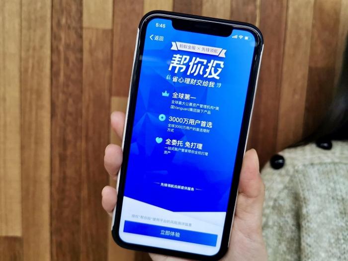 蚂蚁金服和Vanguard集团的合资公司先锋领航投顾CEO张宇介绍,帮你投通过科技能力为用户提供全托管的基金投顾服务,开创了“100”智能理财服务模式,实现1分钟匹配投资建议,几乎0门槛购买,投资者0操心。